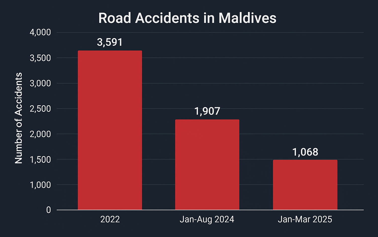 In 2022, Maldives recorded 3,591 road accidents. By the first eight months of 2024, there…
